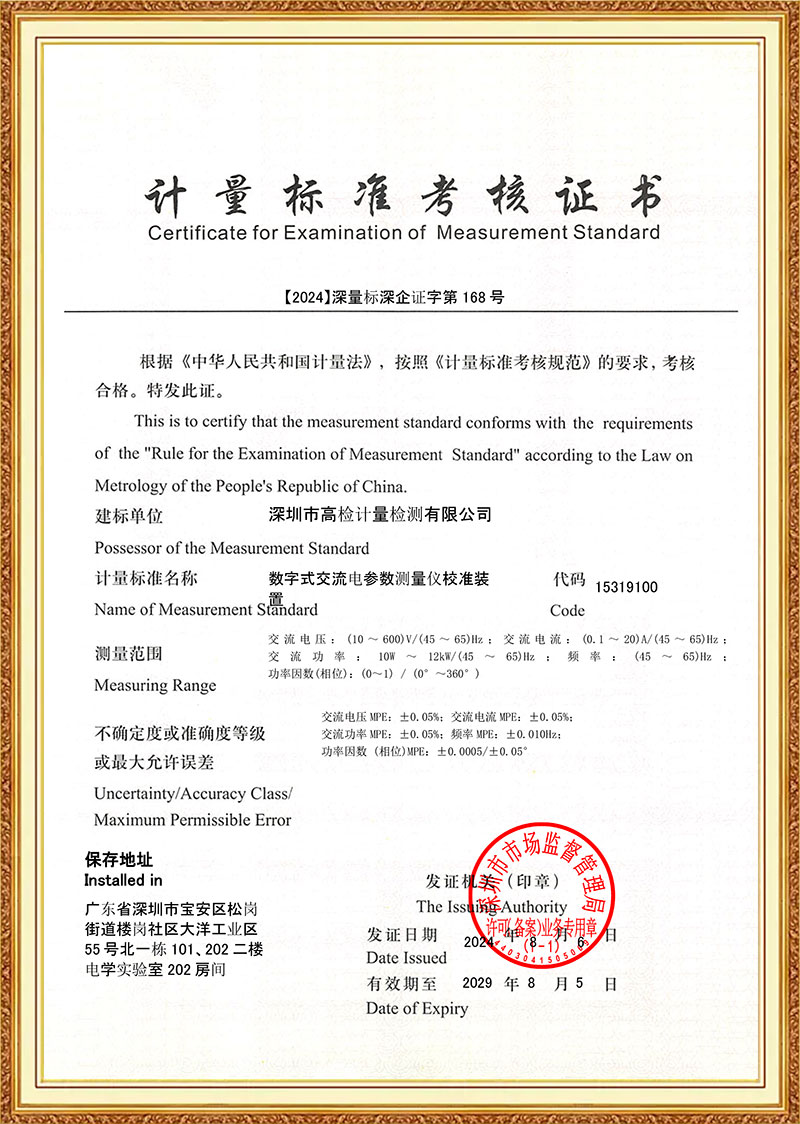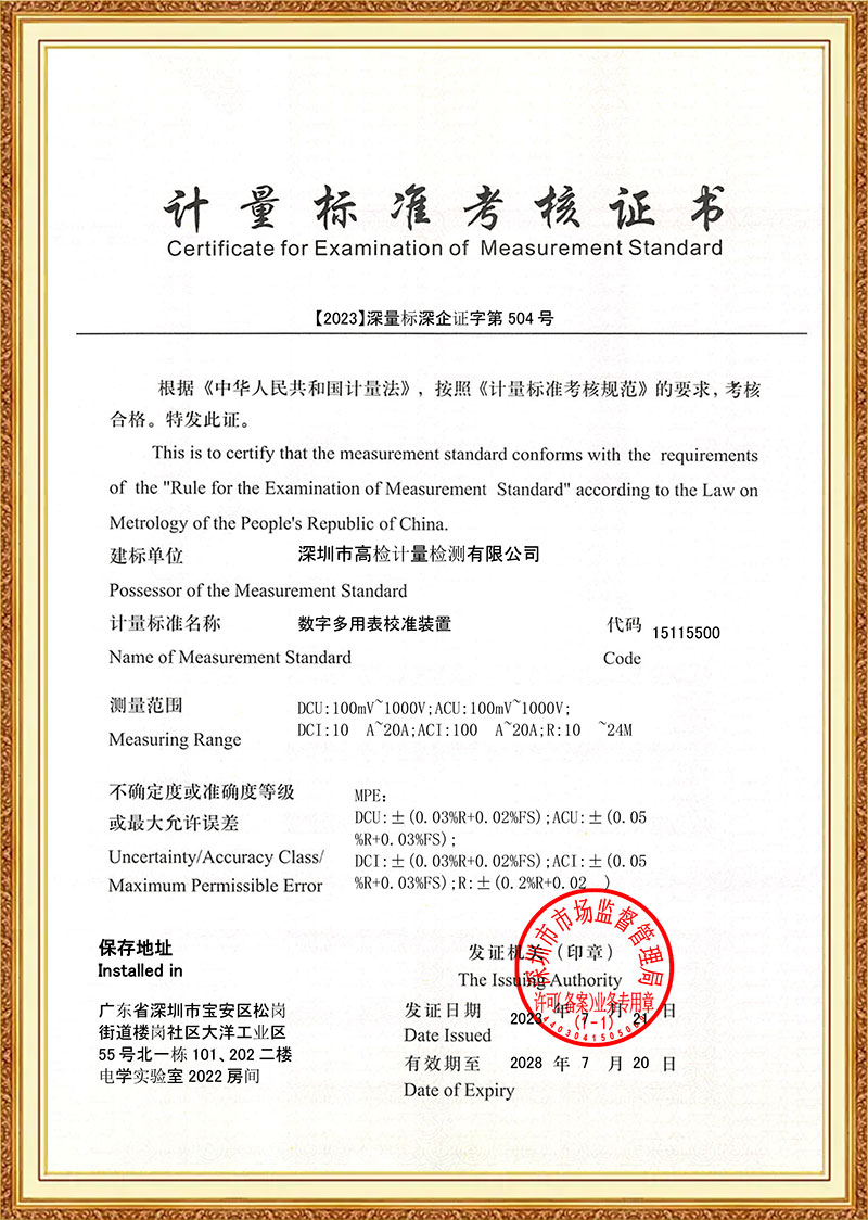 深圳市高检计量检测有限公司(简称“高检计量”),成立于2020年,是一家为全国客户提供仪器计量检测的第三方计量检测机构。公司实验室获得了市场监督管理局(CMA)、中国合格评定国家认可委员会(CNAS)的认可授权。CNAS证书号:L23485。